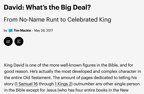 41 And the Philistine moved forward and came near to David, with his shield-bearer in front of him. 42 And when the Philistine looked and saw David, he disdained him, for he was but a youth, ruddy and handsome in appearance. 43 And the Philistine said to David, “Am I a dog, that you come to me with sticks?” And the Philistine cursed David by his gods. 44 The Philistine said to David, “Come to me, and I will give your flesh to the birds of the air and to the beasts of the field.” 45 Then David said to the Philistine, “You come to me with a sword and with a spear and with a javelin, but I come to you in the name of the Lord of hosts, the God of the armies of Israel, whom you have defied. 46 This day the Lord will deliver you into my hand, and I will strike you down and cut off your head. And I will give the dead bodies of the host of the Philistines this day to the birds of the air and to the wild beasts of the earth, that all the earth may know that there is a God in Israel, 47 and that all this assembly may know that the Lord saves not with sword and spear. For the battle is the Lord's, and he will give you into our hand.”